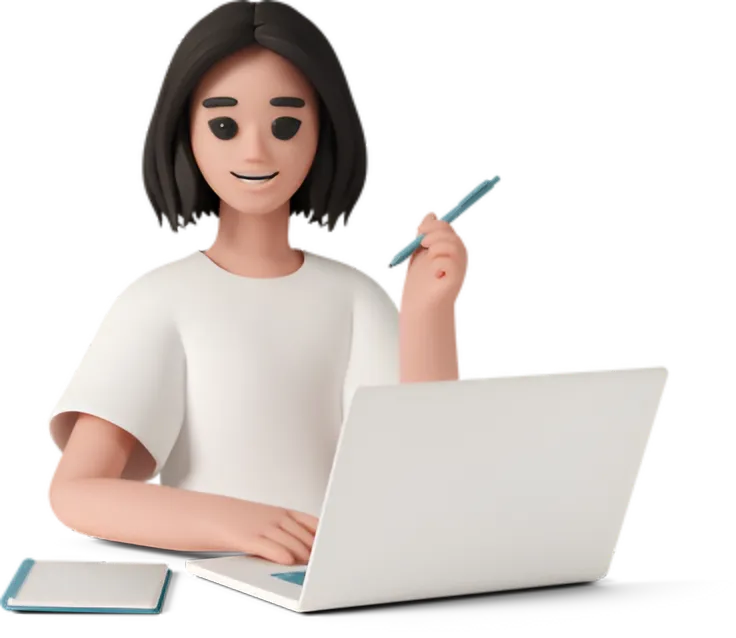 a girl using laptop with a pen in hand. college essay writing service.